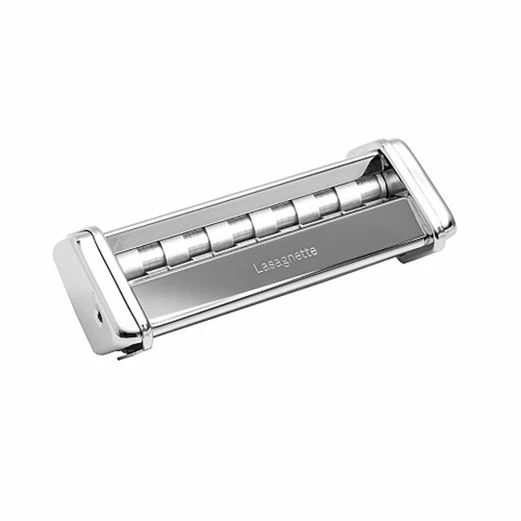 Das Zubehör Lasagnette ist eines der 13 Zubehörteile für frische Nudeln, die mit der Nudelmaschine Atlas 150 kompatibel sind. Sie können es mit der dazugehörigen Handkurbel von Hand oder mit dem Motor Pastadrive verwenden. Die Lasagnette sind ein flaches Nudelformat mit einer Breite von 1 mm. Die empfohlene Stärke des Teigblatts schwankt zwischen den Reglerpositionen Nr. 6 und 9 auf der Nudelmaschine.